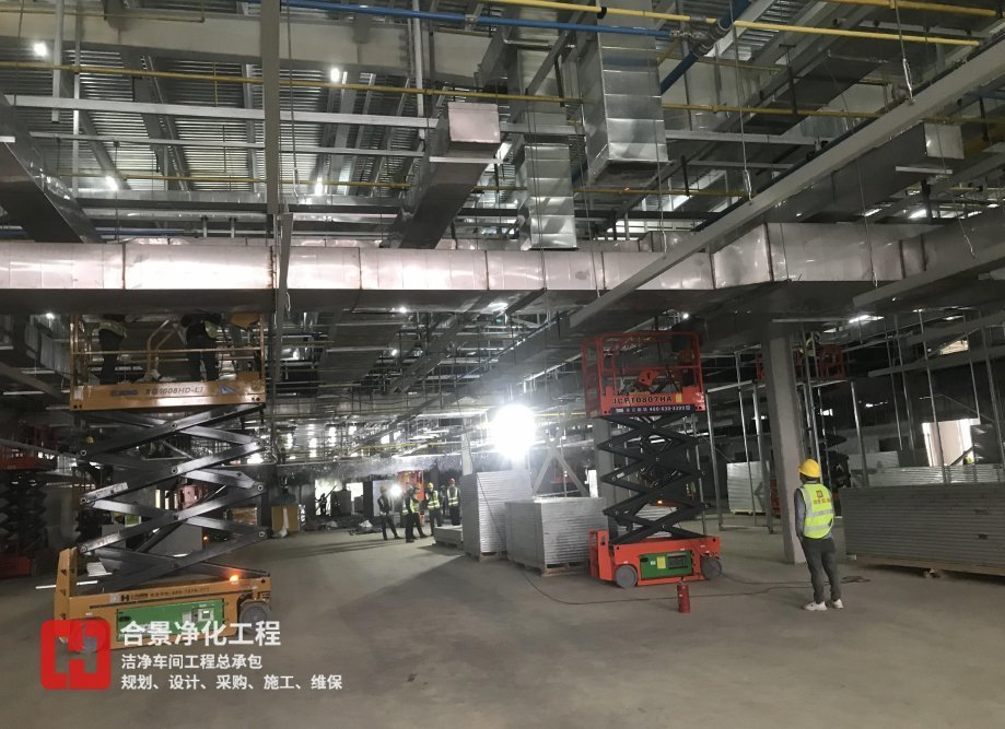 合景智慧建設(廣東)有限公司作為國內凈化行業資深總承包工程服務商,很榮幸中標楚能新能源研究院凈化裝修機電工程項目。本項目包含主體二次鋼結構、凈化彩鋼板裝修、凈化除濕組合風柜送回風管道系統、暖通新風排風系統、空調冷熱源水系統、空調設備安裝、母線槽及動力配電系統、電氣照明插座系統、工藝管道系統(壓縮空氣、氮氣、真空、工藝冷凍水、工藝冷卻水)、生產給排水系統等分部分項工程。項目采用PC總承包模式,總工期45天。